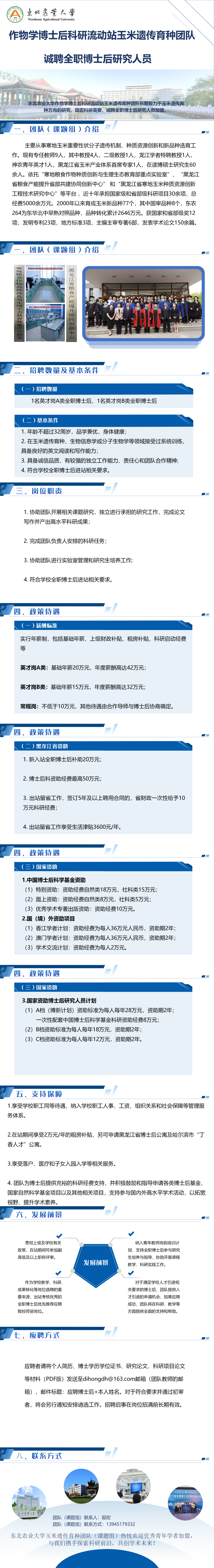 第一期:东北农业大学作物学博士后科研流动站玉米遗传育种团队诚聘全职博士后研究人员