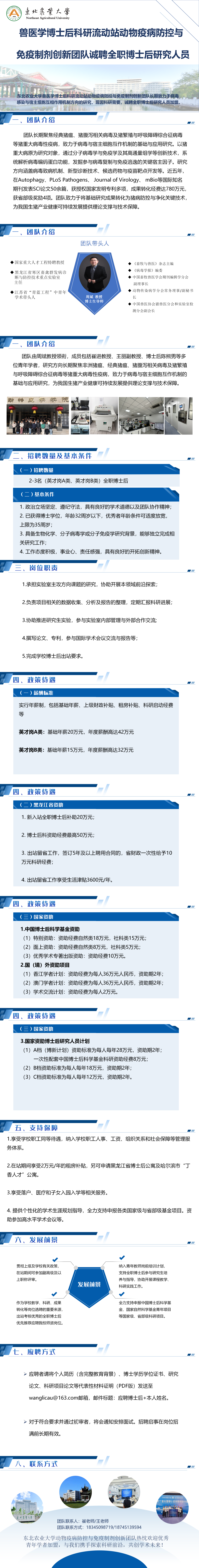 第七期:东北农业大学兽医学博士后科研流动站动物疫病防控与免疫制剂创新团队诚聘全职博士后研究人员