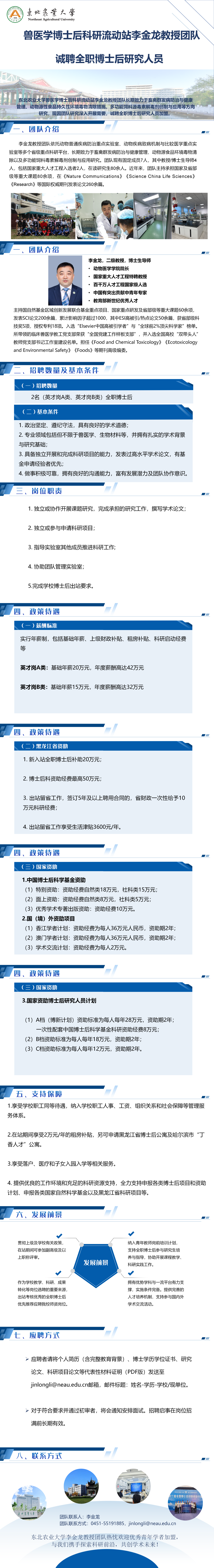 第十九期:东北农业大学兽医学博士后科研流动站李金龙教授团队诚聘全职博士后研究人员