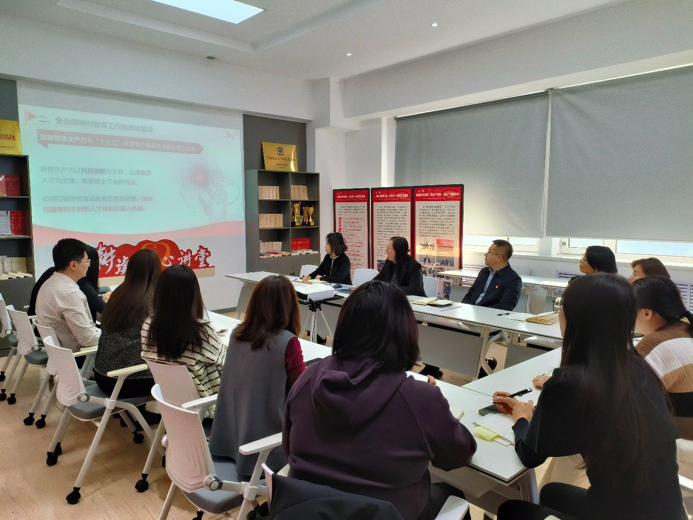 吴春丽围绕党的二十届四中全会整体情况、深刻认识“十五五”时期教育的战略地位、精准把握全会精神对教育工作的具体要求、切实履行教育强国建设的使命担当等方面作了系统而深入的阐释。她指出,支部全体党员要从“十四五”时期我国发展取得的重大成就中进一步深刻领悟“两个确立”的决定性意义,把高质量发展作为学校深化科技人才评价改革,推进教育、科技、人才战略部署的着力点和动力源,奋力书写学校“十五五”人事人才新篇章。